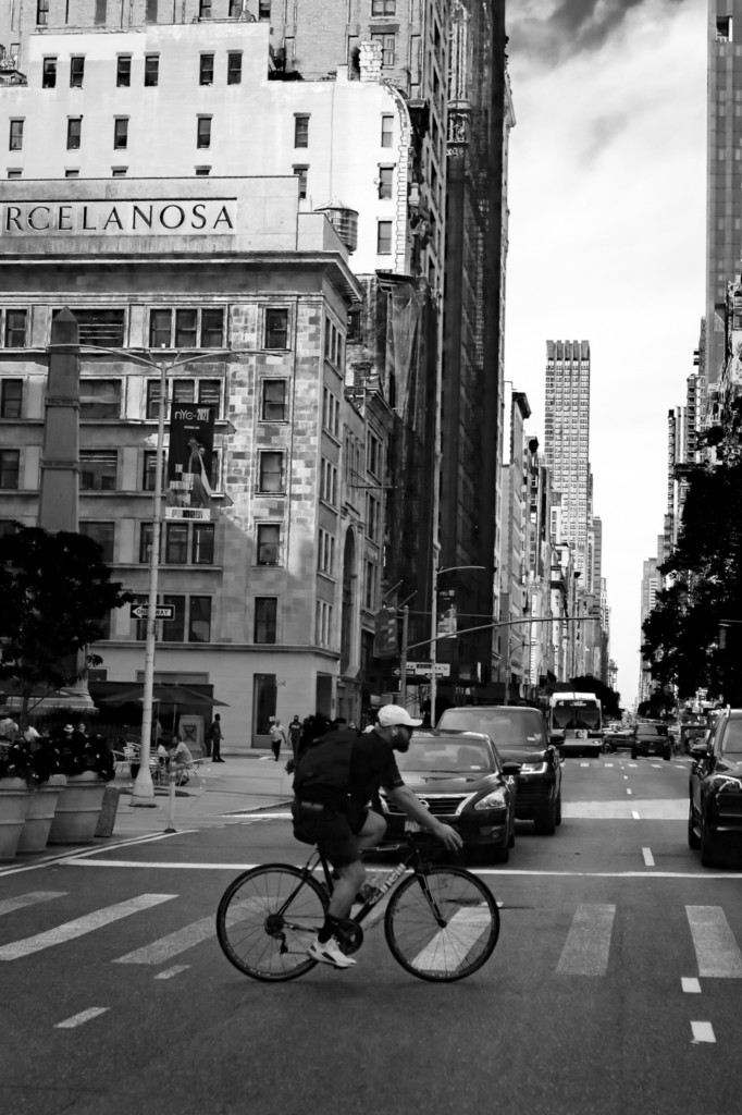 Since that day, I have added street photography to my list of favorite genres. What’s changed? Well, I still feel like a paparazza or a creep with a camera, LOL! But only sometimes and the few times I do feel that way I move past those feelings quickly. You see with shooting street photography; you just never know what to expect because you really have no control over subjects or things like you would in portrait photography. The motivating factor is the UNKNOWN. You don’t know what moment, person, place or thing you will run into. For example, you may be shooting a building and a bicyclist will ride by.